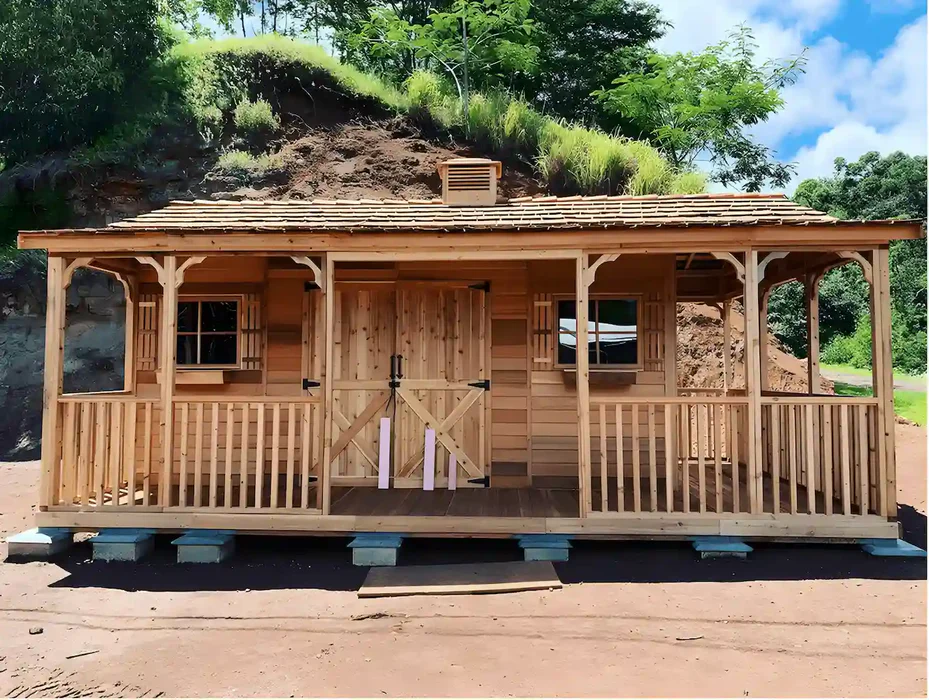 The Cedarshed Rancher Kit includes pre-cut cedar panels, framing, windows, and optional features such as porches. Cedar wood naturally resists pests, decay, and moisture, making it extremely low-maintenance and long-lasting.